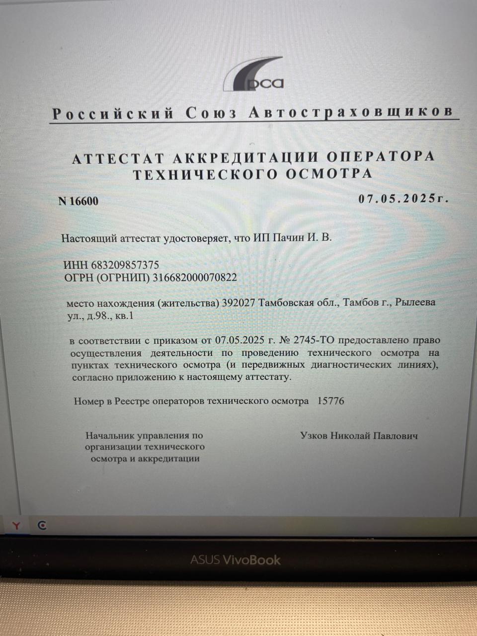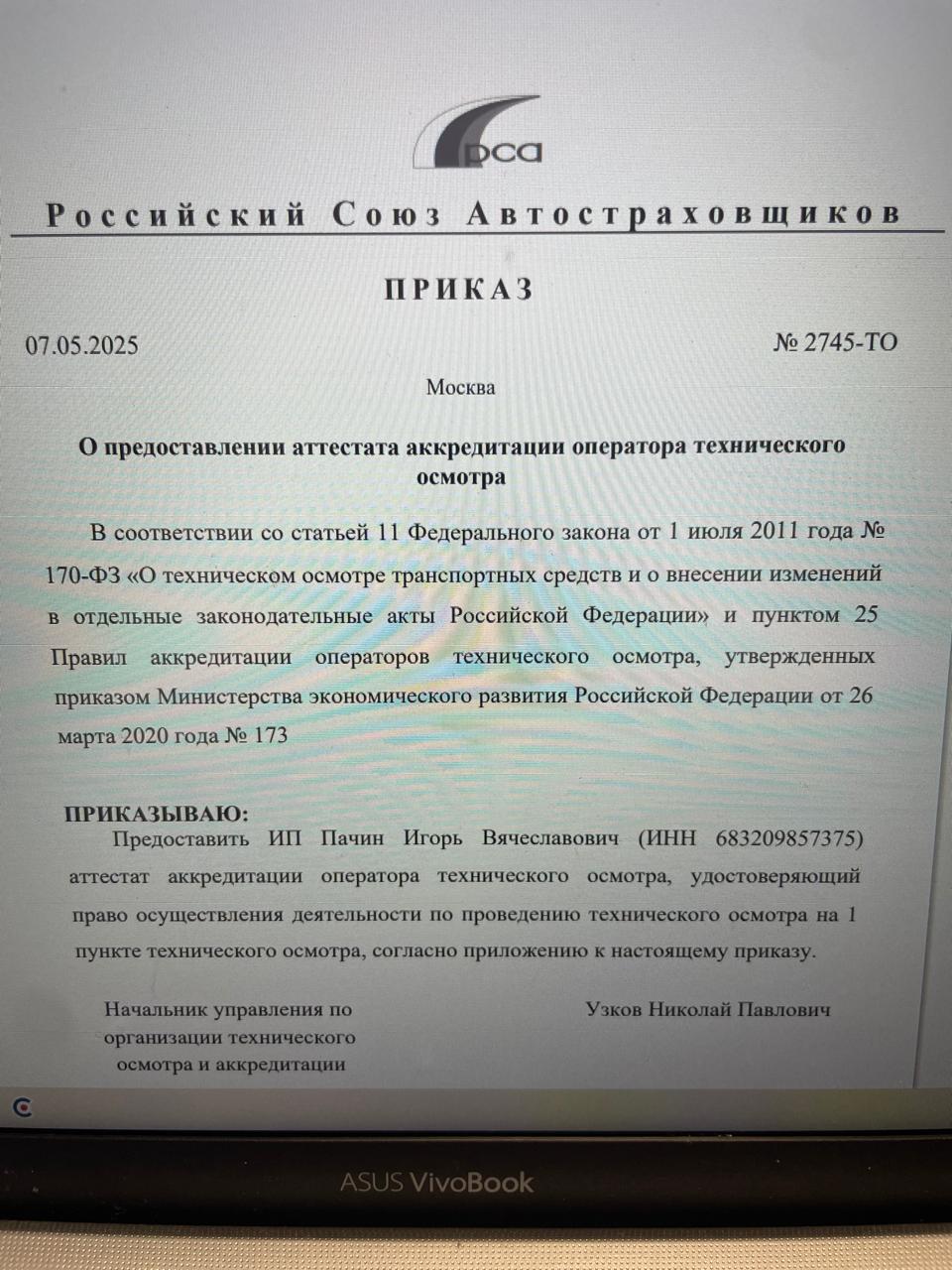 Пункт технического осмотра: оператор ИП Пачин Игорь Вячеславович